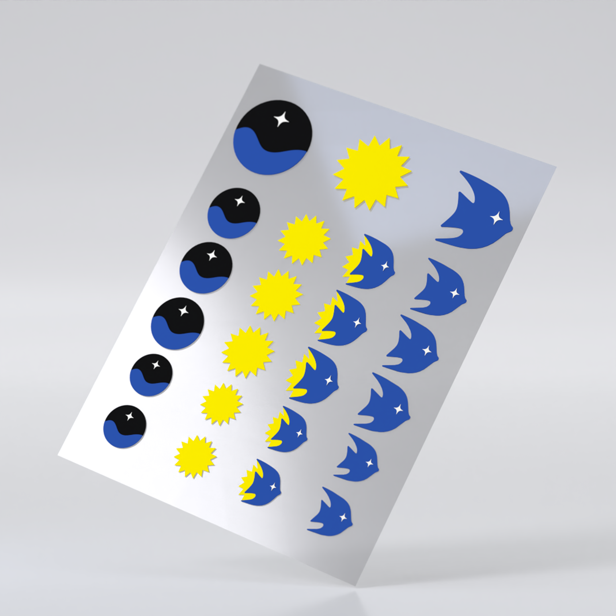 Adesivos secativos em formato de mar, sol e peixes, com tecnologia
